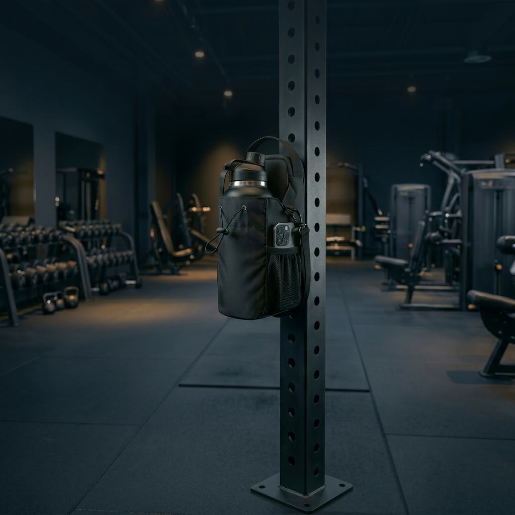 Fini les affaires qui traînent par terre. Le sac de sport magnétique AULRA se fixe en une seconde sur n'importe quelle machine grâce à ses aimants puissants, ta gourde, ton téléphone et tes clés toujours à portée de main, propres et organisés.